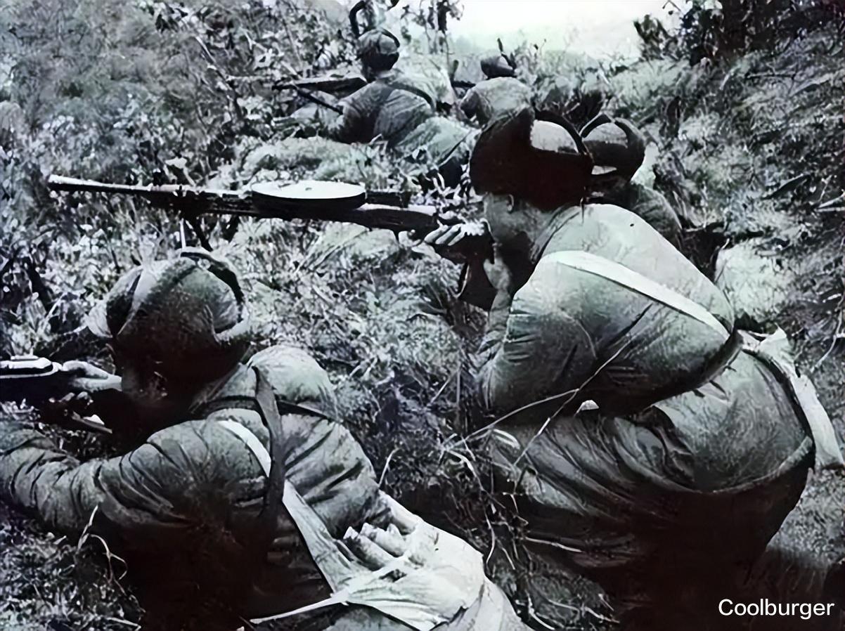 连长一看这架势,立马带着大家找掩护,端起枪还击。
