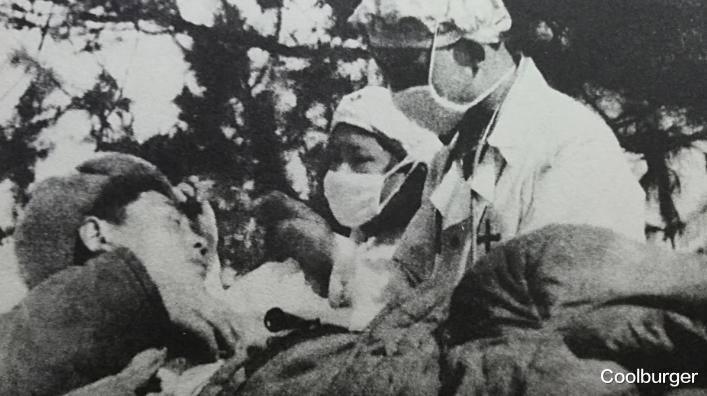 有的战士肩膀中了弹,还要撑着划船,把受伤的战友送回岸上救治。