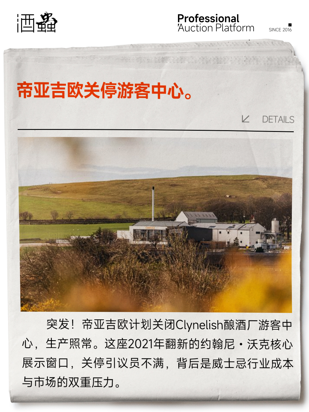 3、帝亚吉欧计划关停 Clynelish 游客中心,行业成本压力凸显