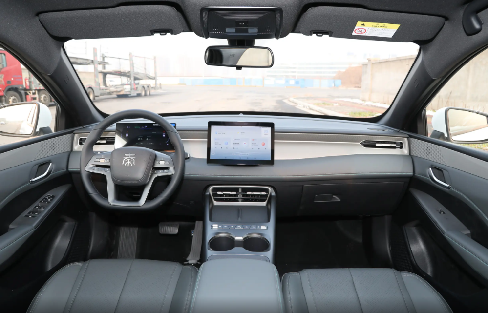 进入座舱,可以看到2026款秦PLUS DM的座舱内部使用了不少软质材料装饰,能够给人较为柔软舒适的触觉感受。但是相比软质材料,它使用的硬塑料材质更多、更显眼,看起来质感并不是很好。虽然2026款秦PLUS DM标配了8.8英寸的中控屏,中低配版本搭载10.1英寸的中控屏,高配版本搭载12.8英寸的中控屏,但是它给人的科技感并不是很强。
