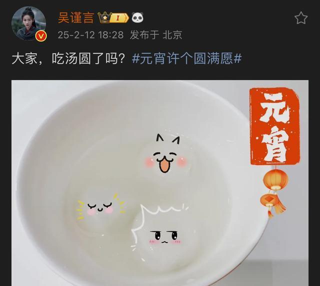 吴谨言元宵节晒照发文,三口之家引热议,与同行对比显差异