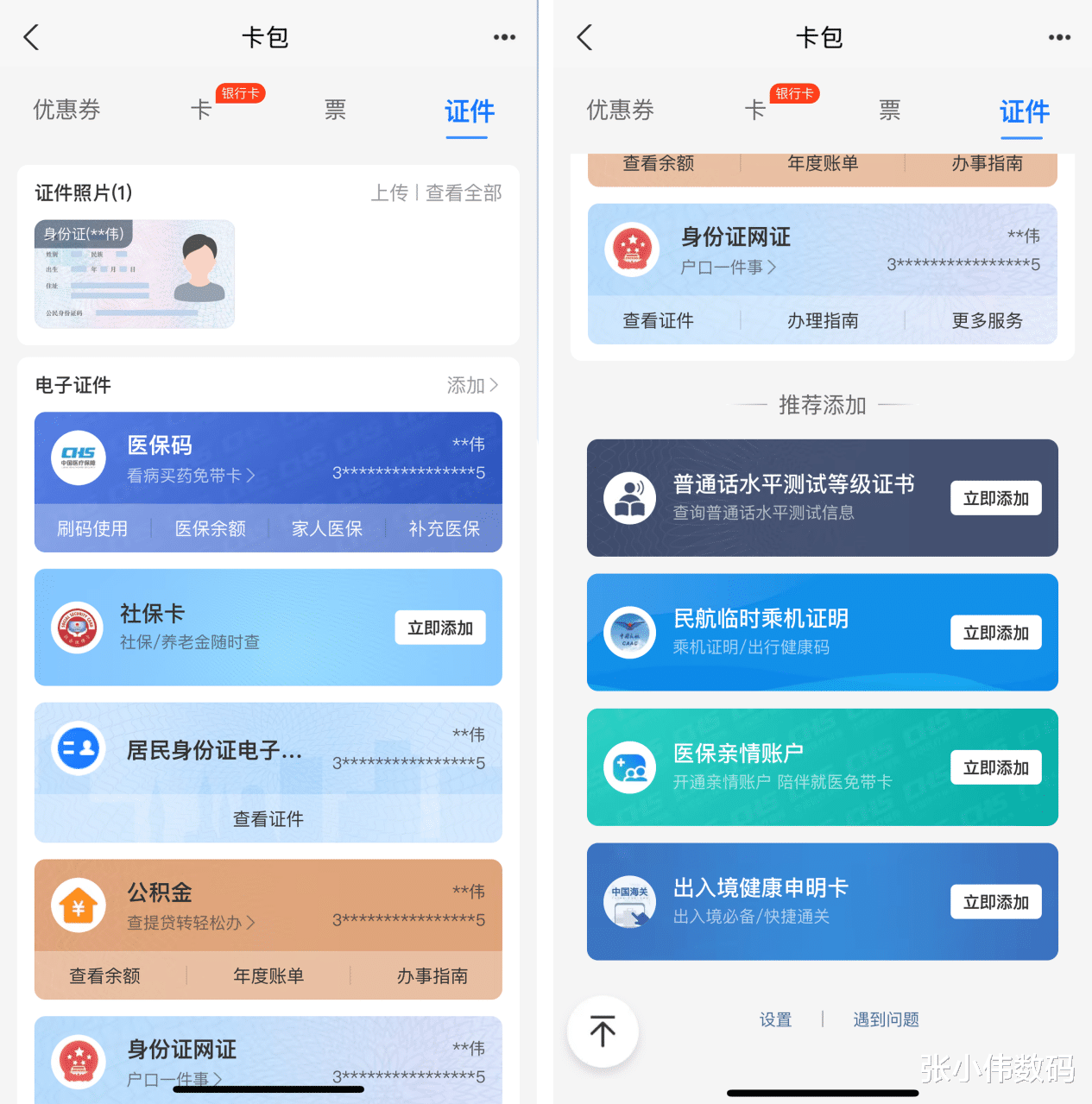 此外支付宝还可以添加很多电子证件,比如电子身份证、社保卡、医保码、公积金、民航临时乘机证明,甚至普通话水平证书都能绑定上,感觉以后实体证件都不用带了,全都用电子证件就好了。