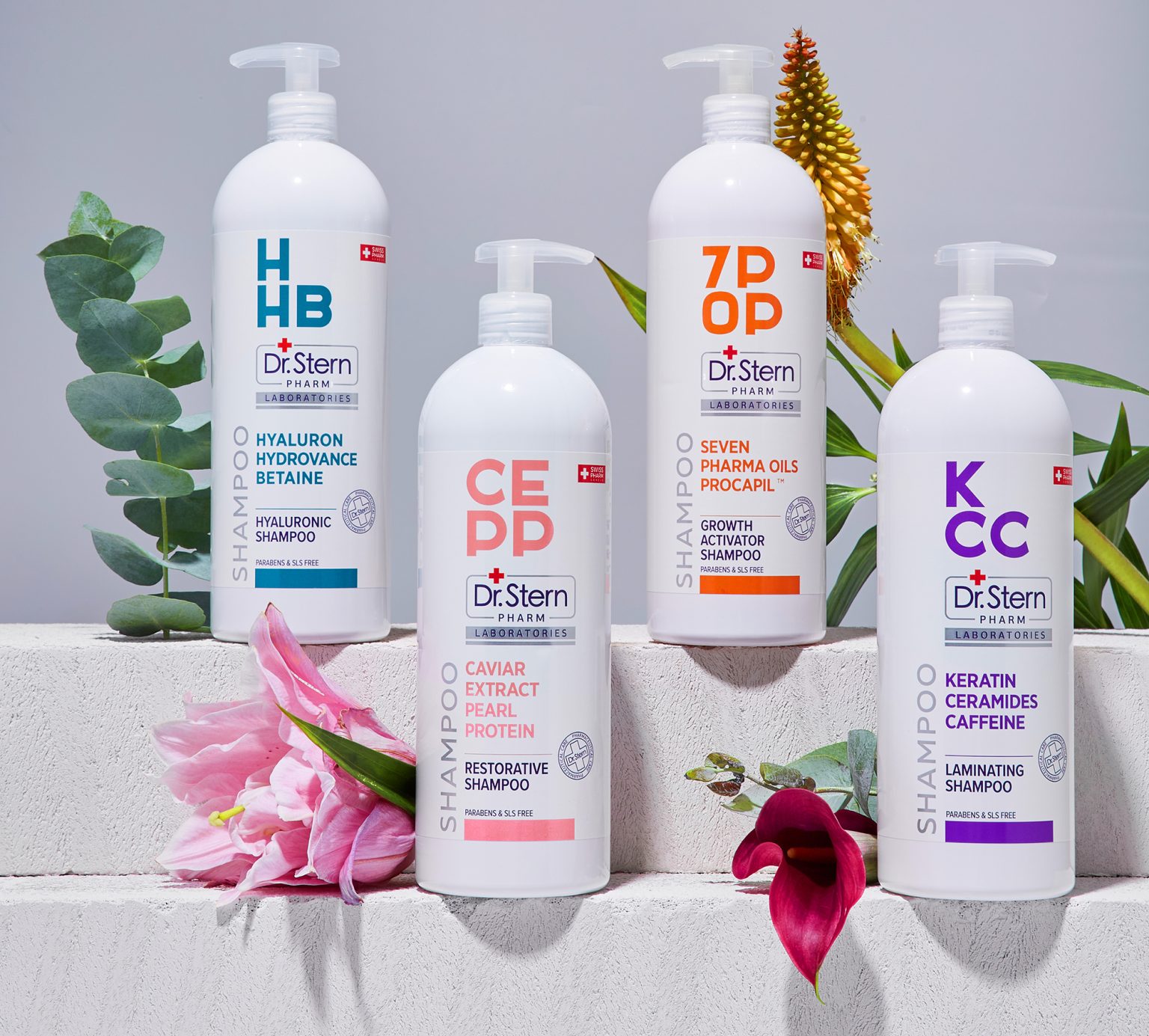 先看Dr.Stern 的洗护包装:这波设计直接把 “理科生式精准” 焊在瓶身上!不同系列用字母缩写 + 色彩做 “身份牌”:KCC 系列的紫调 +“角蛋白、神经酰胺” 关键词,像给头发贴了张 “修护面膜” 标签;7P0P 的橙色调 +“7 种精油 + 防脱”,把 “生发 buff” 写得明晃晃;HHB 的蓝、CEP 的粉,更是像给不同发质的人发了 “专属入场券”。连瓶身的简约线条 + 实验室风标识,都在说 “我是专业的”—— 不用看详情页,瓶身就是 “功效说明书”,伸手拿的瞬间就知道 “这瓶是我的菜”。