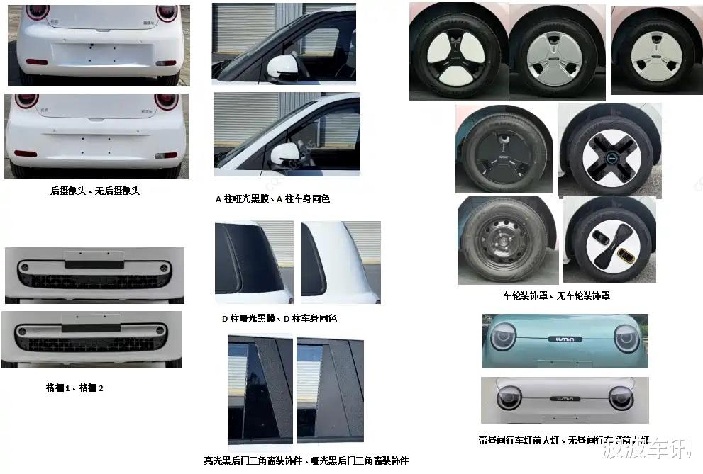 在申报的细节方面,我们可以看到它可以选择轮毂盖的类型,新车还有一些车身的细节可选择。长安Lumin四门版的长宽高分别为3515/1715/1545mm,轴距为2200mm,轴距加长了220mm。在动力方面,新车搭载的是35千瓦的电机,采用磷酸铁锂电池组。