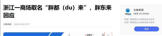大象新闻(浙江一商场取名“胖都(du)来”,胖东来回应 2025.03.28)