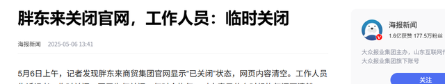 参考链接海报新闻(胖东来关闭官网,工作人员:临时关闭 2025.05.06)