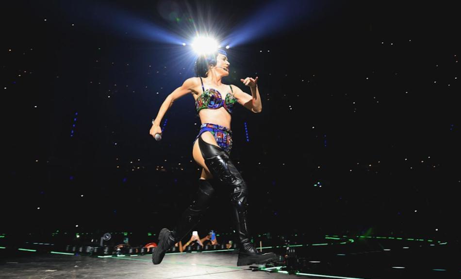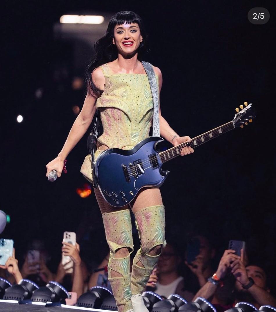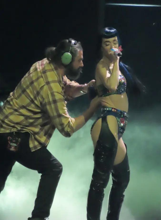 拉斯维加斯的舞台灯光下,40岁的“水果姐”凯蒂·佩里正卖力奔跑着,镶满水晶的胸衣却突然崩开。 她一把抓住衣服,对着麦克风自嘲:“天哪,我的胸衣要掉了! ”台下粉丝尖叫欢呼,社交媒体瞬间炸锅。
