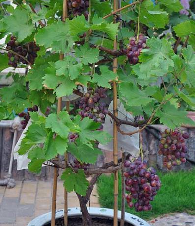 这样就能培育出一棵形态优美、又能结果的葡萄盆栽。