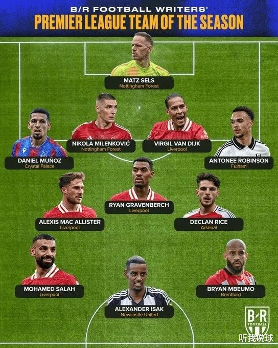 2024-25 赛季英超正式结束,BR 评选出赛季最佳阵容,利物浦成为大赢家之一,共有 4 名球员入选。