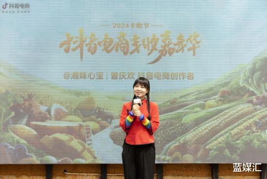 来自湖南娄底的@湘妹心宝 曾庆欢也是抖音电商创作者的代表,在活动现场,她讲述了自己借助抖音电商为家乡带货400多万元的故事。2019年10月,她开始在抖音电商带货白溪腐乳,曾一场直播卖空当地腐乳厂平常三个月的产量。如今,她已建起农村电商直播公益实训基地,教乡亲们如何出镜当主播,帮乡亲们就业致富。