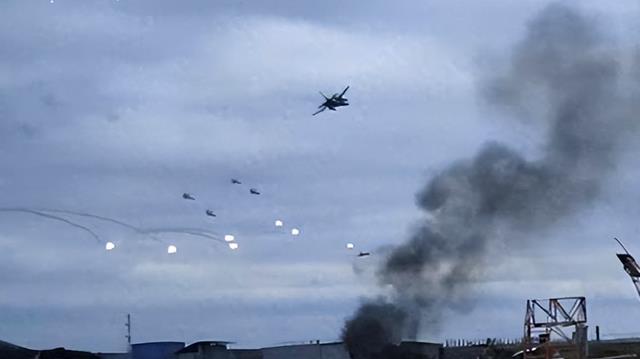 S-400防空导弹率先怒吼,在远距离就将来袭的无人机群击落。