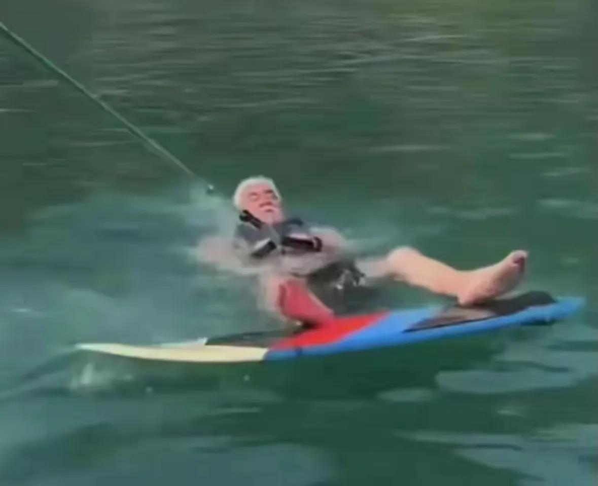 端午假期又现身杭州西溪湿地,墨镜遮住满头银发,怀抱小女儿看龙舟的模样,恍惚还是二十年前那个叱咤片场的“大胡子”。