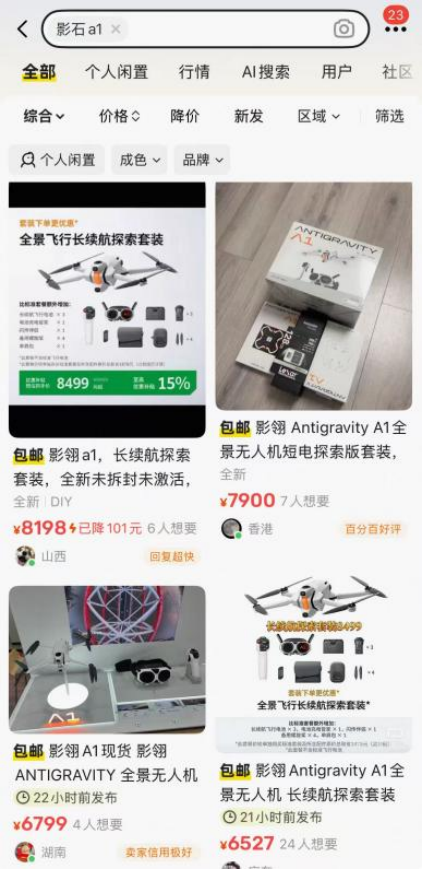 但与此同时,质疑声也不断,除了前述画质、避障等问题,部分用户对软件完成度、图传稳定性也表达了担忧。这种体验落差导致不少首发用户快速转手,与二手市场的迅速抛售现象相互印证。