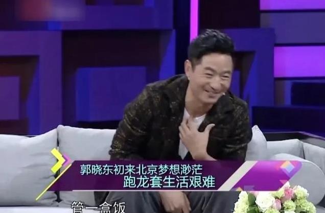 毕业之后,郭晓东去拍戏了,他资源不太好,几乎接不到戏,只能去跑龙套,一天可以到5块钱,好一点的时候可以拿到10块,管一份盒饭,他觉得这个倒是挺好的,可以解决吃的了。