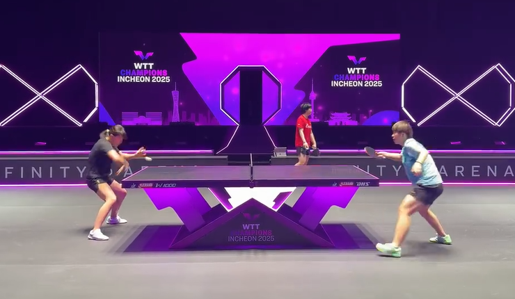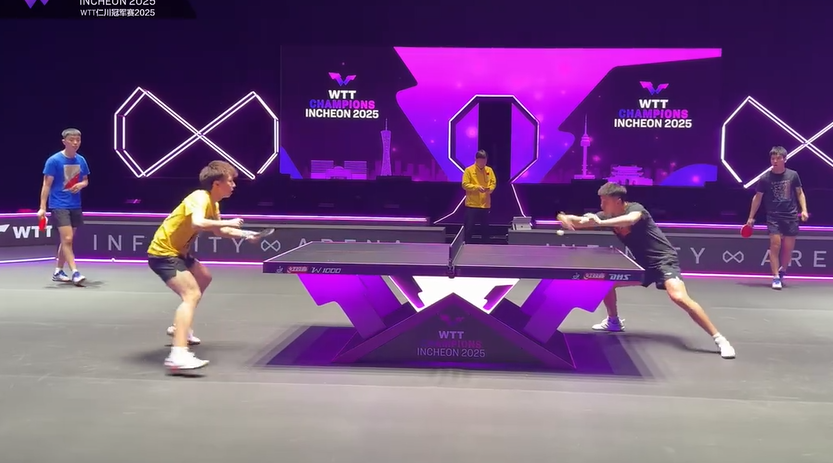 本站比赛,林诗栋、王楚钦、梁靖崑、孙颖莎、王曼昱几位主力行使了豁免权,选择不参赛。林高远、向鹏、陈垣宇、薛飞出战男单,王艺迪、陈幸同、蒯曼、钱天一出战女单。在抵达仁川之后,国乒开始进行适应场地训练,男队四人共用一张球台,交替练球,林高远与薛飞合练,陈垣宇与向鹏同台对抗;女队四人同样是共用一张球台,王艺迪与陈幸同进行强强对抗,随后蒯曼与钱天一进行合练。
