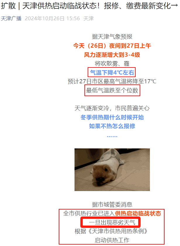 如今已11月份,天津即将开始供暖。