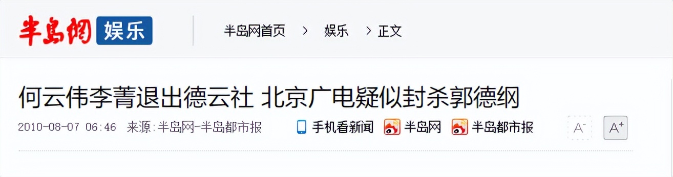 半岛都市报——何云伟李菁退出德云社 北京广电疑似封杀郭德纲