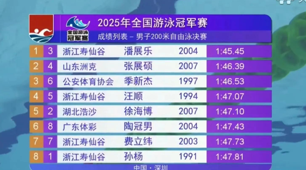 现在最带劲的就是潘展乐这小子了!他前些天刚在400米破全国纪录,这次200米又游出个人最佳成绩。看他在水里扑腾那劲头,活像条刚下锅的活鱼。听说他每天训练量比国家队标准还多20%,这拼命三郎的架势,难怪能接班孙杨。