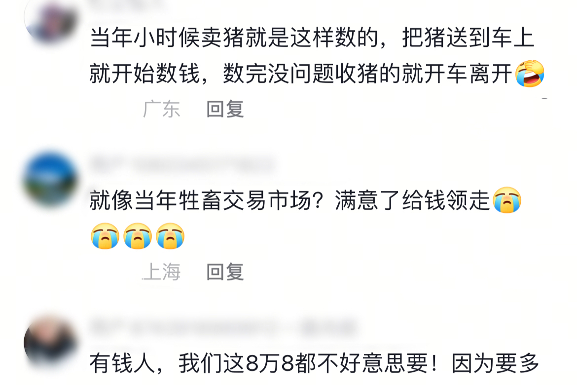 也有网友表示:小时候卖猪就是这样的,满意了才能离开。
