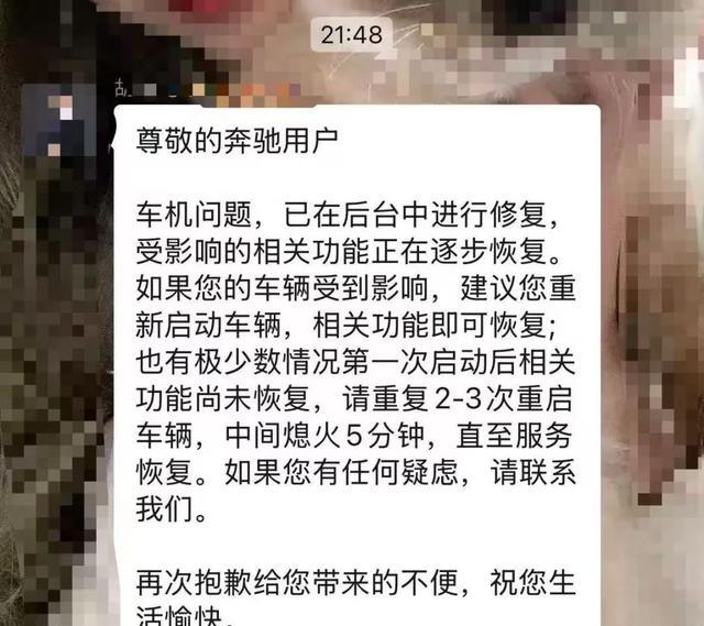 在的时间里,奔驰终于发布了初步消息,受到影响的车主收到回复,宣称需要重新启动车辆才能恢复相关功能。有车主在社交平台上分享试图重启车辆后的恢复情况,殊不知,更多的车主对此仍心存疑虑。再者,当车主们的信任逐渐受到打击时,他们也开始反思这份信任的来处。奔驰是否还有能力在未来维持其在高端汽车市场的良好声誉?