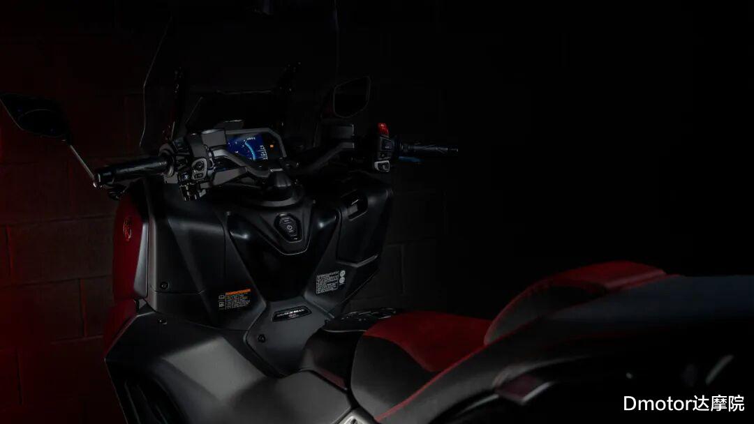 外观设计方面,雅马哈25周年TMAX 560 TECH MAX以2006年TMAX blackmax为灵感,采用独特的红色细节装饰,让这台熟悉的旗舰踏板再次焕发新意。