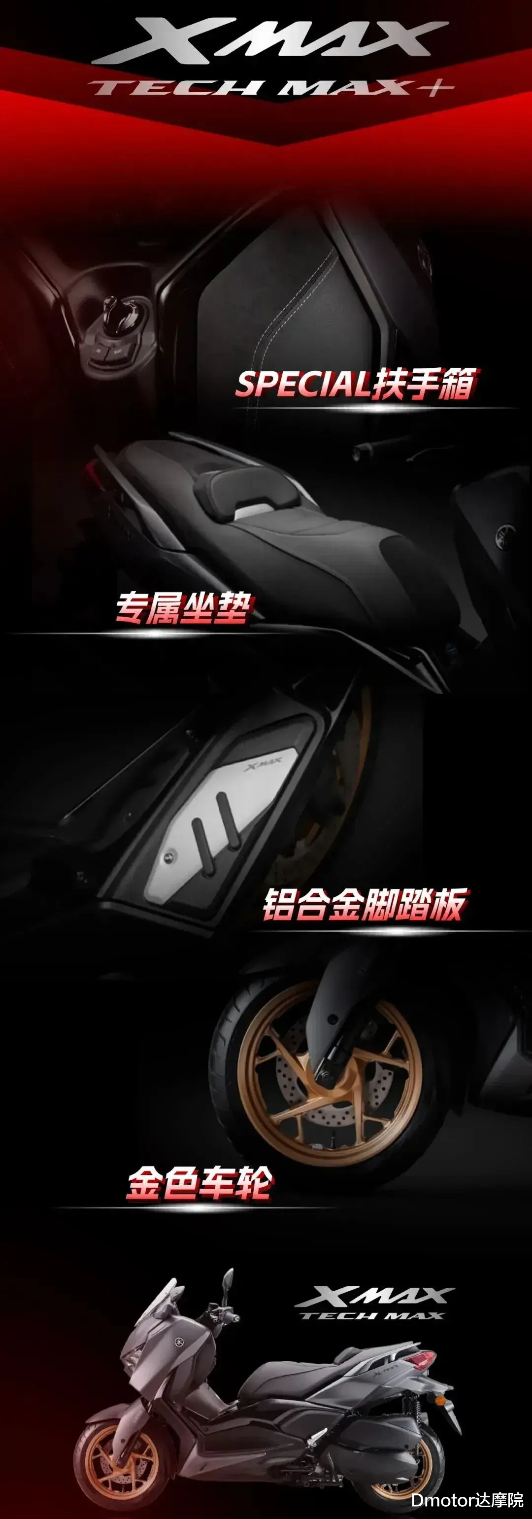 除了旗舰跑羊车型之外,一直被国内各大厂商模仿的XMAX TECH MAX也迎来了25周年车型,而且还有一个细节感拉满、加热坐垫和手持的XMAX TECH MAX+版本。