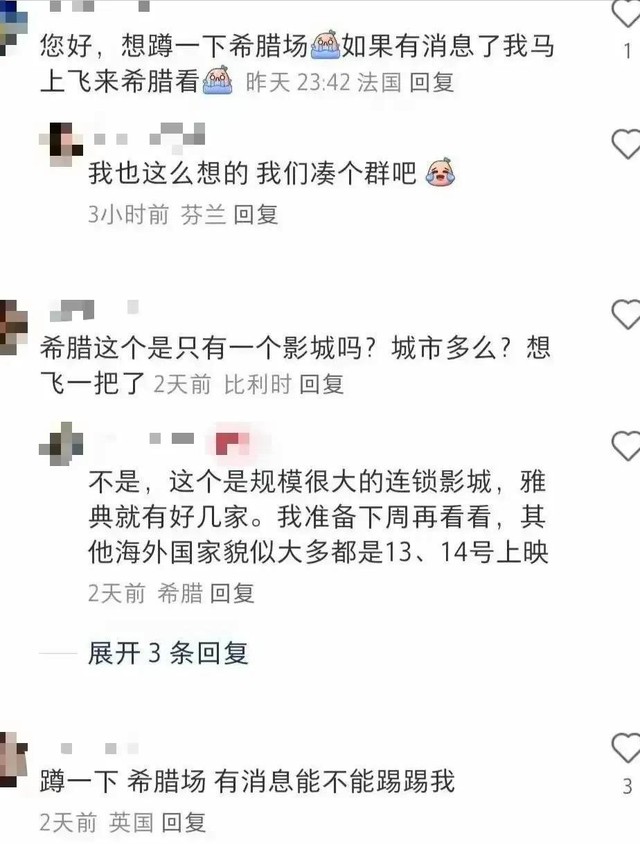 眼看其他国家没有上映《哪吒2》,希腊立马就增加了排片场次,随着希腊宣布12家影院上映《哪吒2》的消息传开,欧洲各国的中国留学生都沸腾了。