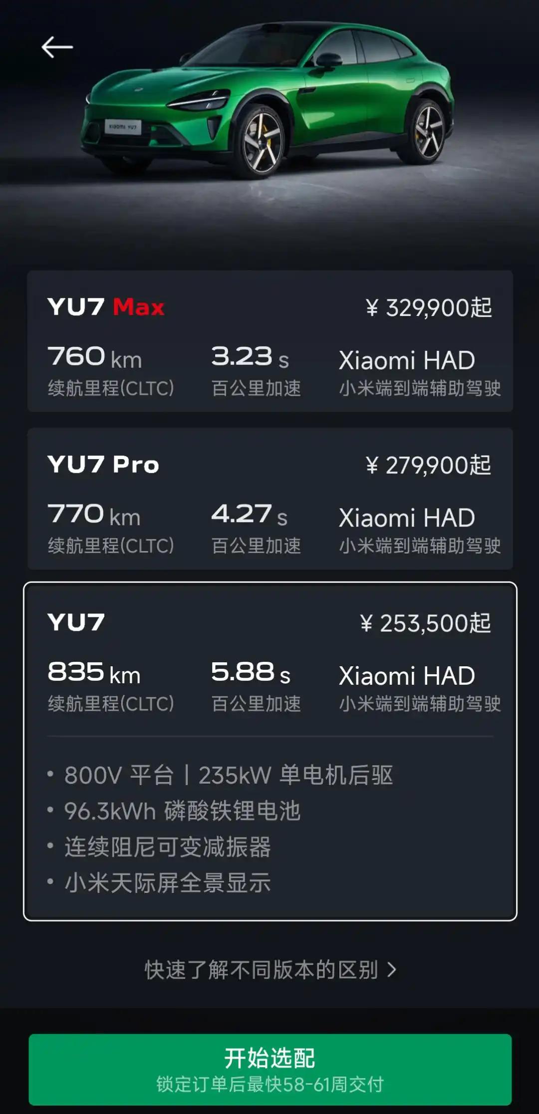 彼时小米汽车订购页面显示,YU7 标准版锁单后交付周期为57-60周,Pro 版为50-53周,Max 版为37-40周。