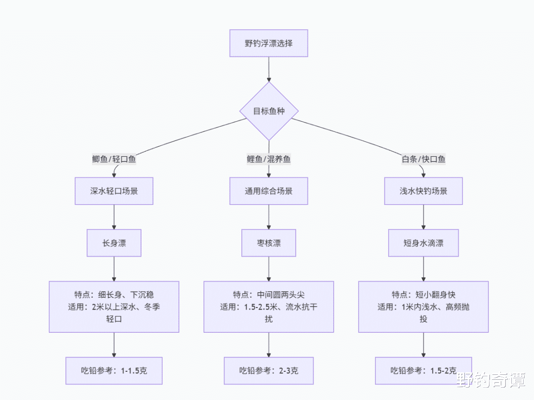 这里有简单浮漂选择对照表,根据水深和目标鱼种快速匹配: