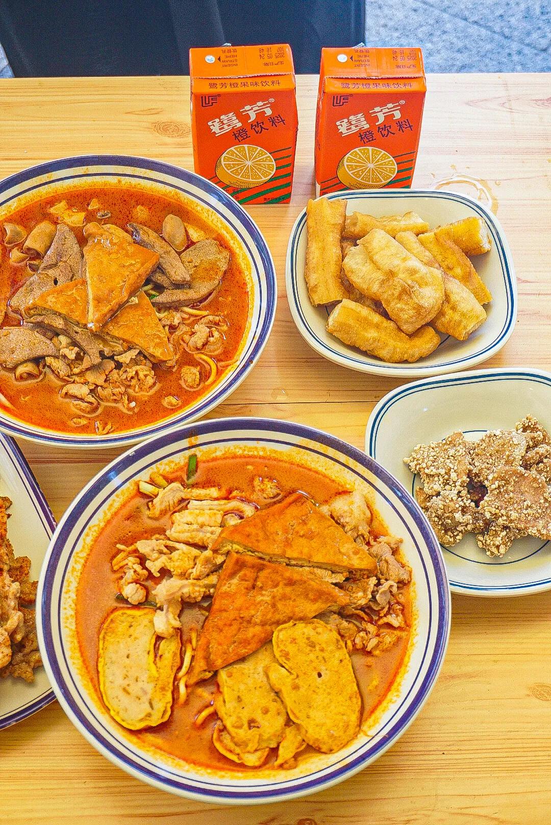 每天现切的雪花肉肥瘦相间,在沙嗲滚汤里涮几下下就熟透,豆腐干已经吸满了沙嗲的汤汁,咬下去会爆汁的那种!加面不加价!吃完还能再续面的,这样一碗普通版只要15r!当然还可以另外依据自己喜好再加各种好料~但是这一碗物价在厦门已经是感人了!还可以搭配里脊肉串、炸醋肉、油条等闽南小吃,都是本地人爱吃的搭配!
