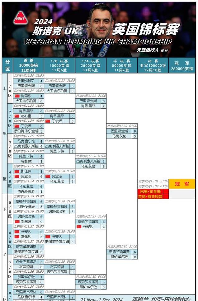 北京时间12月1日上午8时58分,英格兰约克当地时间已是后半夜的凌晨一点,2024斯诺克英国锦标赛半决赛的第二场角逐,刚刚尘埃落定,贾德·特鲁姆普6-2力克凯伦·威尔逊,巴里·霍金斯6-5气走马克·艾伦。