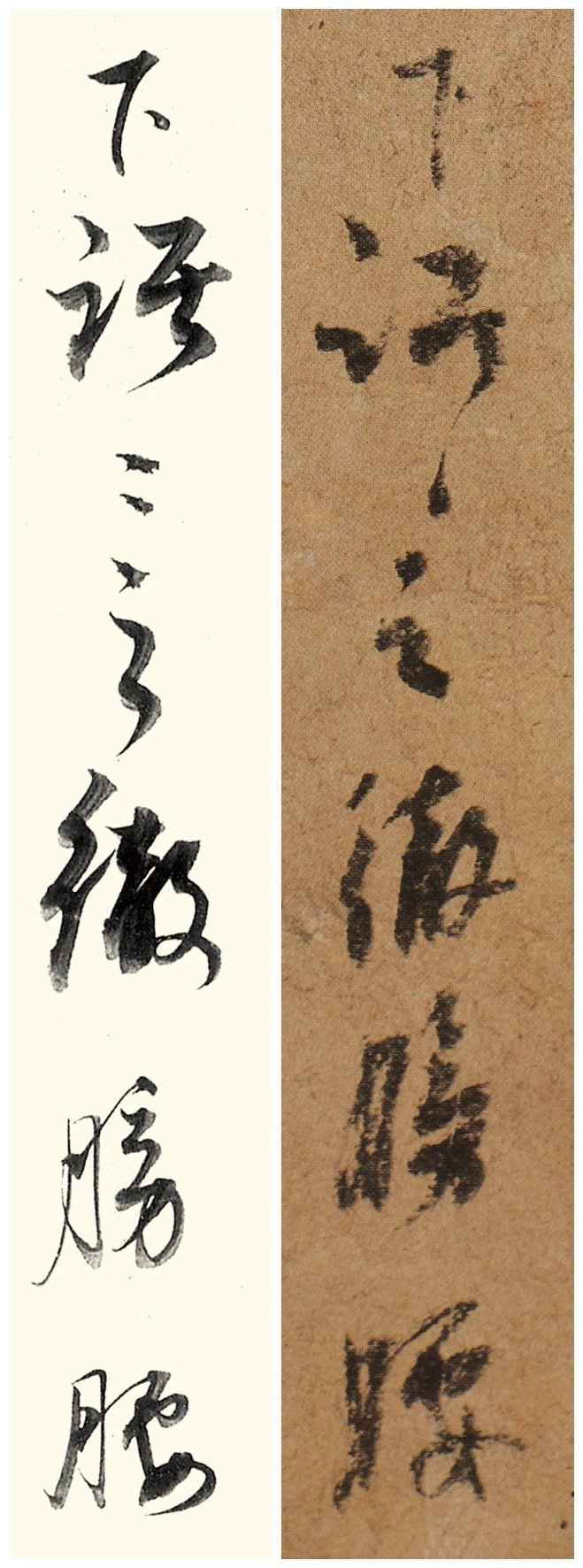 董其昌懂杨凝式的"妙",却不硬学他的"怪"。原帖"背拳摩肾部"的"肾"字,杨凝式写得像个蜷缩的拳头,笔锋拧着劲;董其昌临的时候,把笔画舒展开,像揉肾时的轻缓,墨色淡了些,却多了层"润"。他学的是杨凝式的"空灵",却用了自己的"圆劲","才觉力倦来"的"倦"字,竖弯钩写得像满月,不像原帖那么"锐",倒像老者伸懒腰的柔。