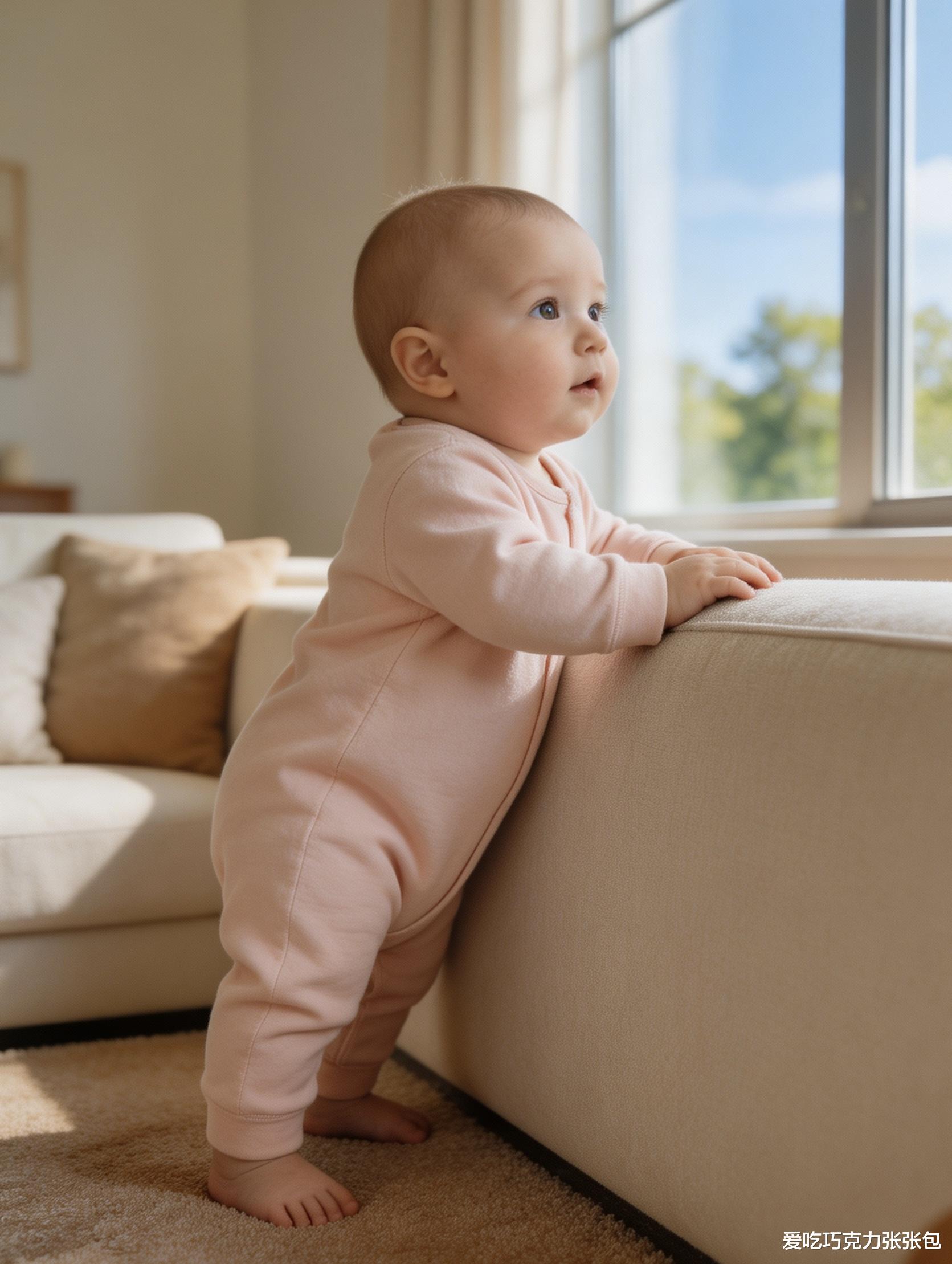 站立是下肢力量的突破,10个月左右宝宝能扶着家具站立,11个月可扶走,1岁左右尝试独立站立,循序渐进的站立练习,能为未来独立行走打下基础。