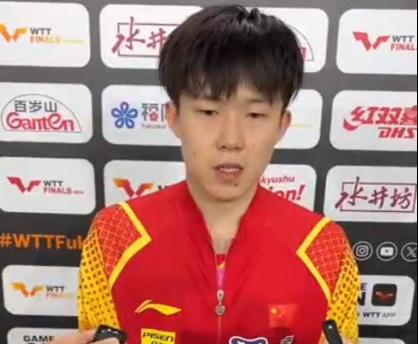 WTT福冈总决赛男单,王楚钦3比1战胜弗朗西斯卡晋级8强,四局比分11-8,12-10,11-13,11-6。赛后,王楚钦袒露心声。