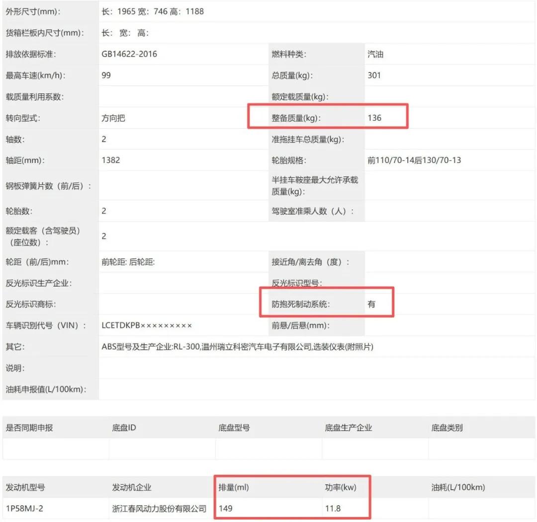 动力上搭载的是春风自家的149cc水冷四气门发动机,动力没变依旧是11.8kw,不过整备质量上来到了136kg,平踏版本比龙骨版本还重1kg!这是多了啥?