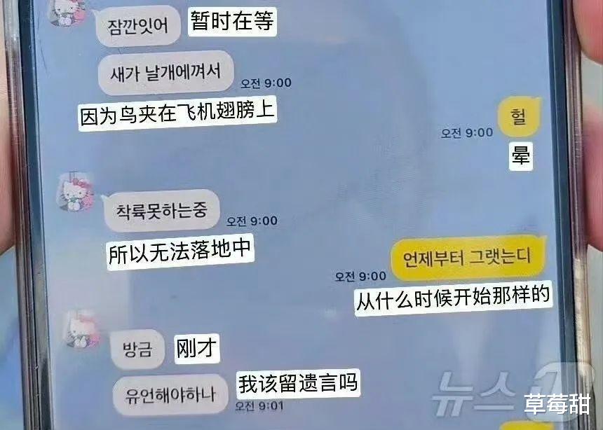 有乘客在坠机前,通过手机给亲人留下最后的讯息:"鸟卡在飞机里无法着陆,突然允许我们打电话。你没接电话我就给你留言吧。妈妈我爱你。"