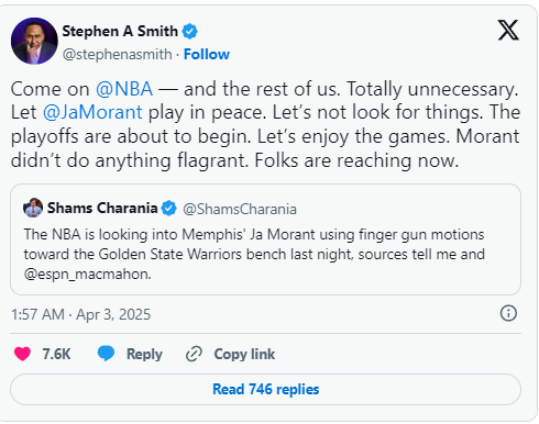 ESPN名嘴斯蒂芬·A·史密斯直接在社交媒体开炮:“能不能让莫兰特安安静静打球?!”这事瞬间炸锅。