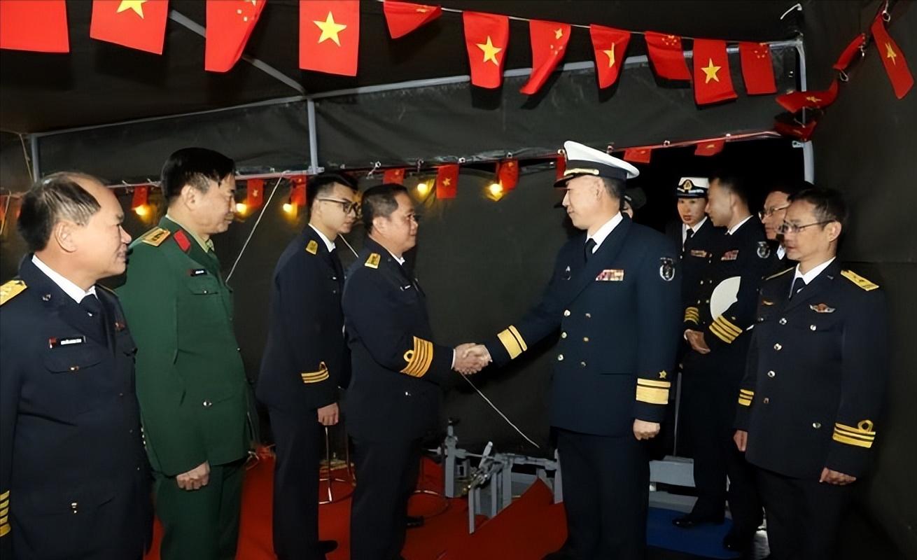 12月1日人家已经大大方方靠港,参加中越建交75周年纪念活动,甲板招待会、舰艇互访一套流程走下来,标准的“走亲戚”。既然是来做客的,路过家门口的走廊,真犯不着端着枪对着。