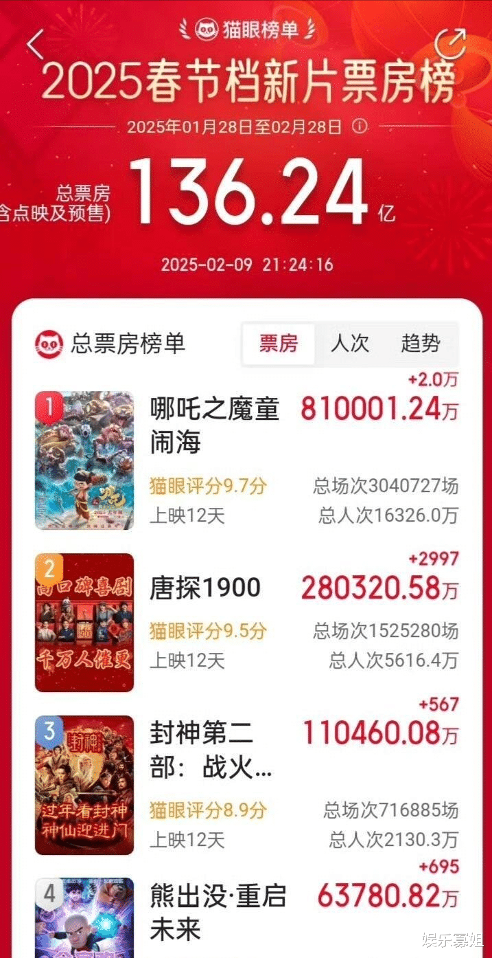 看来《哪吒2》票房估100亿还是保守了,影片的热度丝毫没有减退的迹象。事实证明我们不是不爱看电影了,影视圈根本没有所谓的寒冬,只要优秀的作品我们观众是乐意买单的,甚至会热情的二刷三刷!