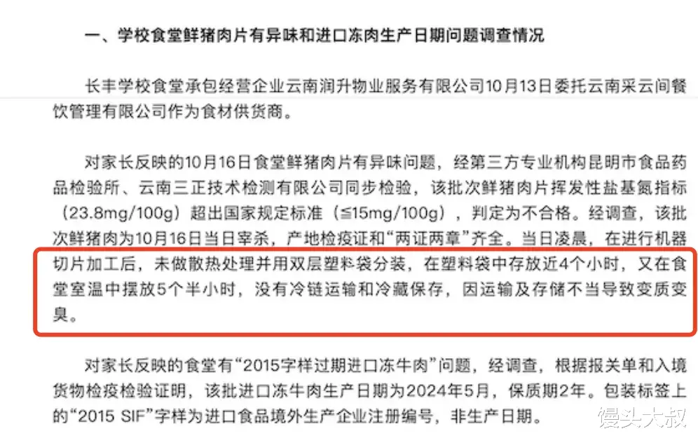 云南昆明长丰学校「臭肉事件」的结果终于出来了。