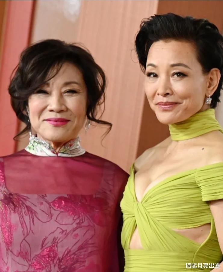 再看看陈冲身边的杨燕子,奥斯卡主席,也是个华裔。人家没穿啥大牌,就一袭改良旗袍,配上红色薄纱披风,直接把陈冲给比下去了。