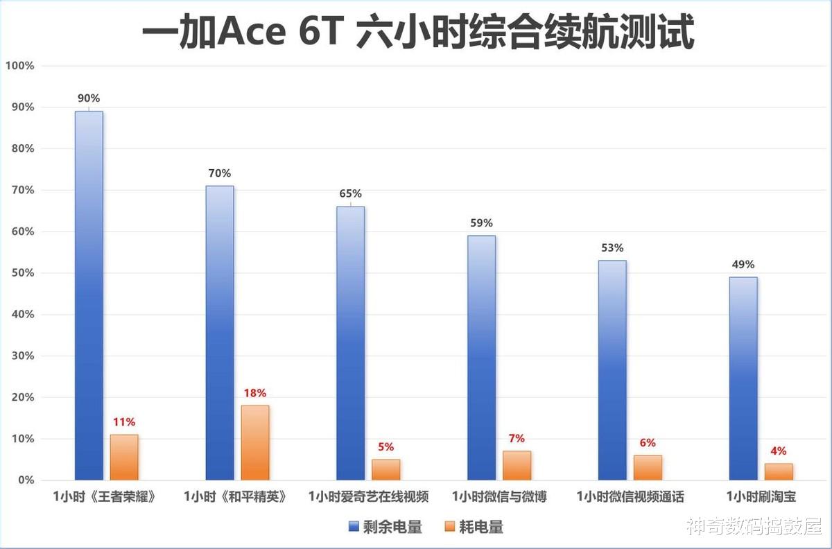 在持续6小时的高强度续航实测中,一加Ace 6T展现了卓越的功耗控制能力,仅消耗51%电量,剩余电量高达49%。具体测试环节如下:
