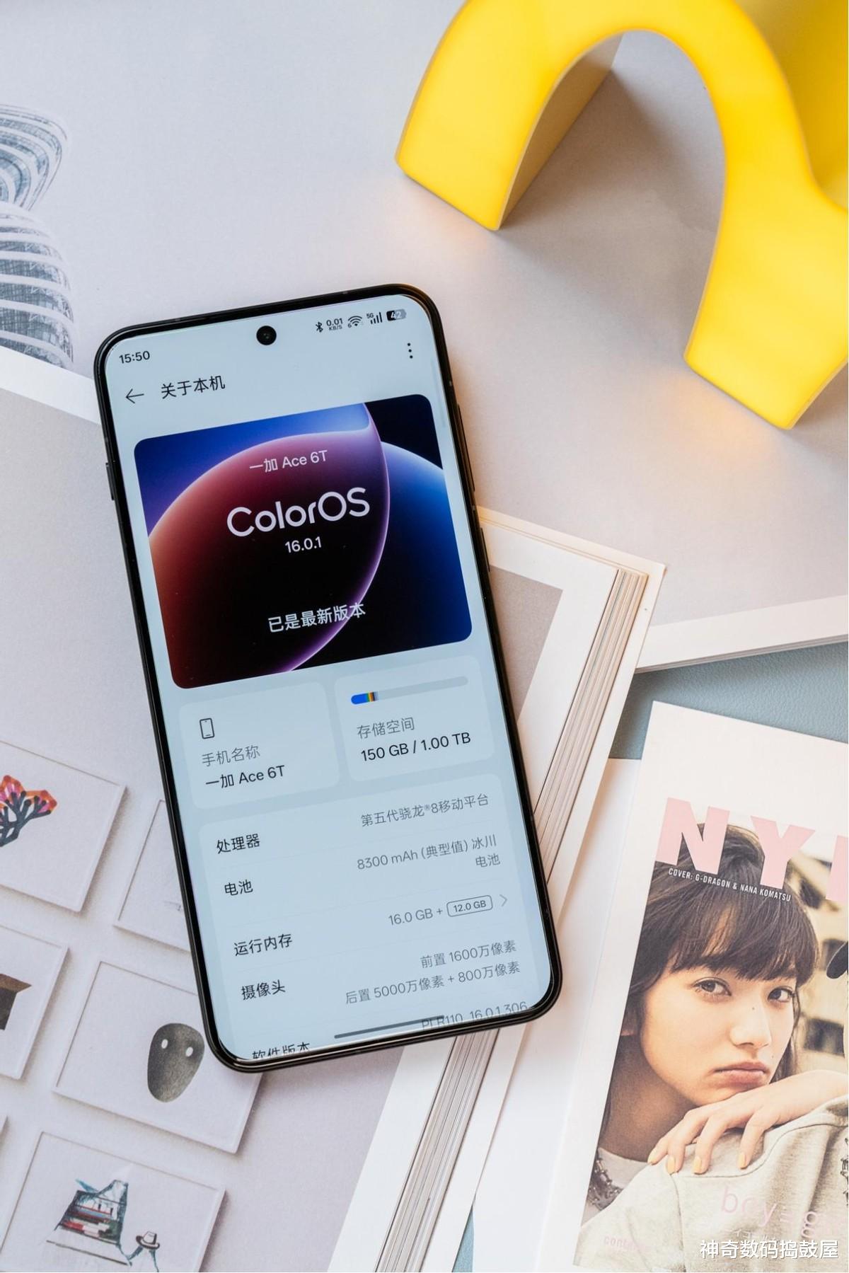 可能有人会嘀咕:“直角边框?会不会硌手啊?” 说实话,拿到真机前我也有点小担心。但用了这段时间,一加Ace 6T的做工真心让我改观了!它的边框边缘其实做了非常精细的2.5D弧度打磨,摸上去圆润顺滑,完全不是那种生硬的直角。硌手?不存在的!握在手里感觉特别贴合舒服。而且,它里面塞了8300mAh那么大一块电池(闪速黑216g,厚度8.3mm),在同样性能强、电池大的手机里,绝对算得上“苗条”又“轻盈”了!拿久了也不会觉得累手,这点必须点赞。