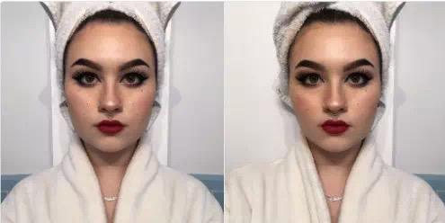 12:是不是你第一眼都感觉这两张照片是一模一样的?其实一张是真实的她,一张是镜子里的她