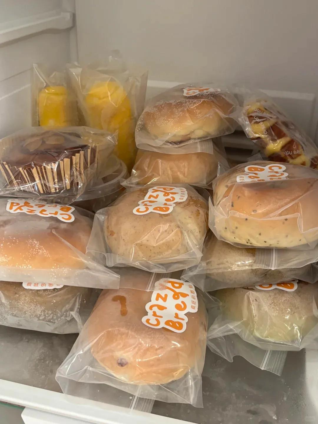 如果实在要吃上好几天,冷冻其实是比冷藏更好的选择。把面包切片后用保鲜袋分装好,放进冷冻室。