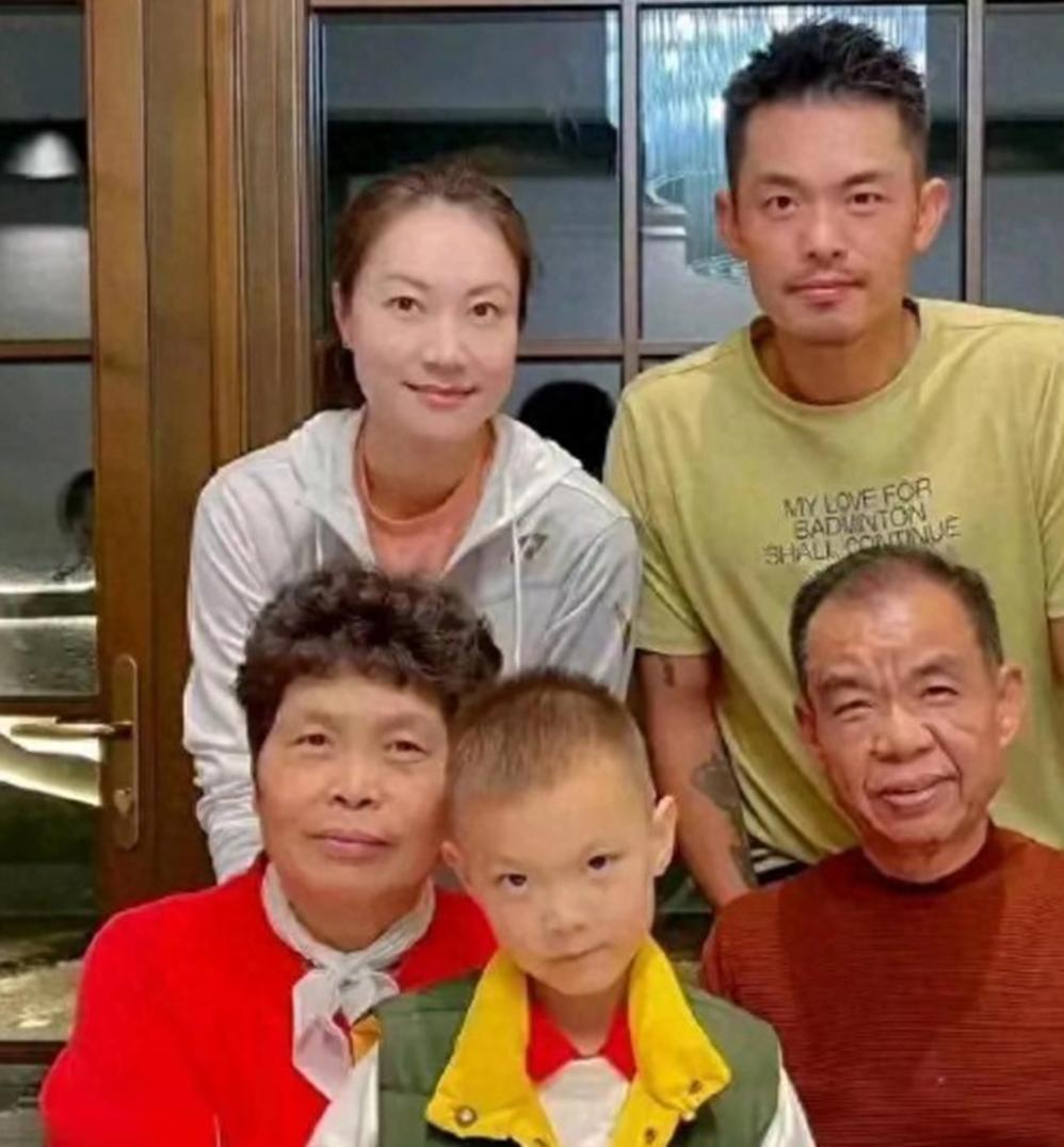 一家三口的合照洋溢着满满的幸福,但肤色上的差异却格外引人注目:谢杏芳最为白皙,林丹则显得肤色黝黑,据说是他特意追求的美黑效果。