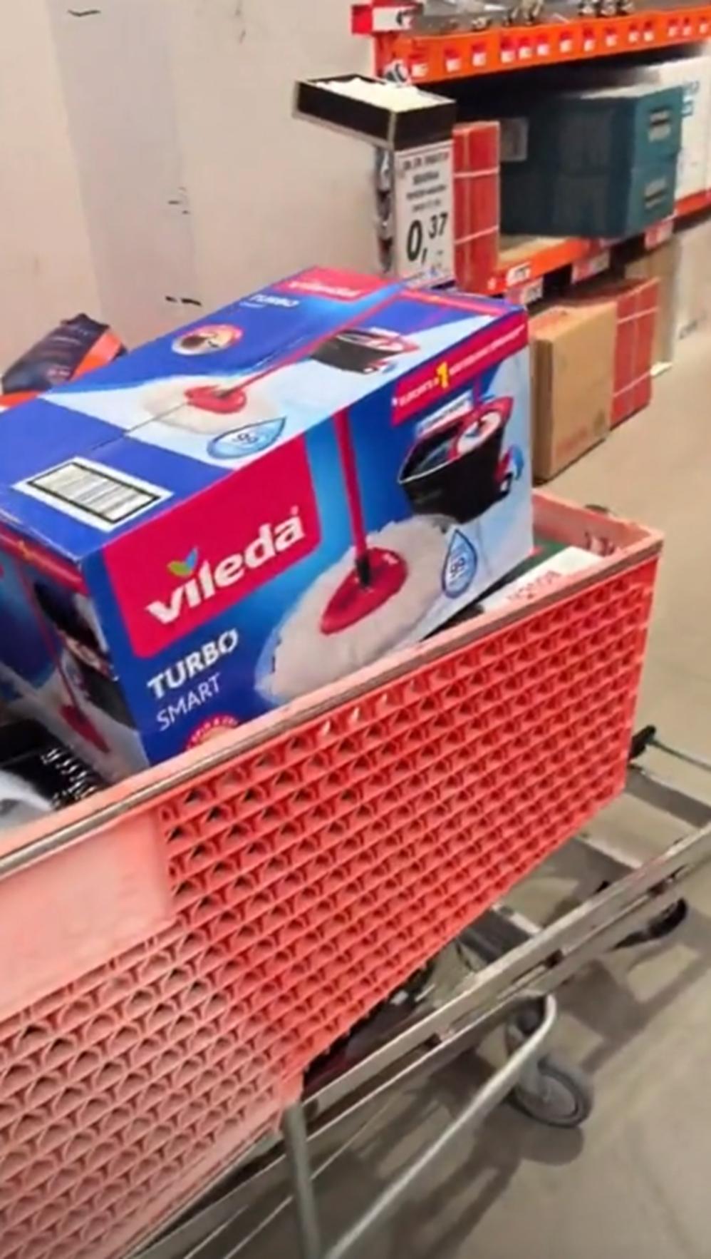 谢杏芳在超市采购时,商品上的西班牙语标签透露出他们身在西班牙!