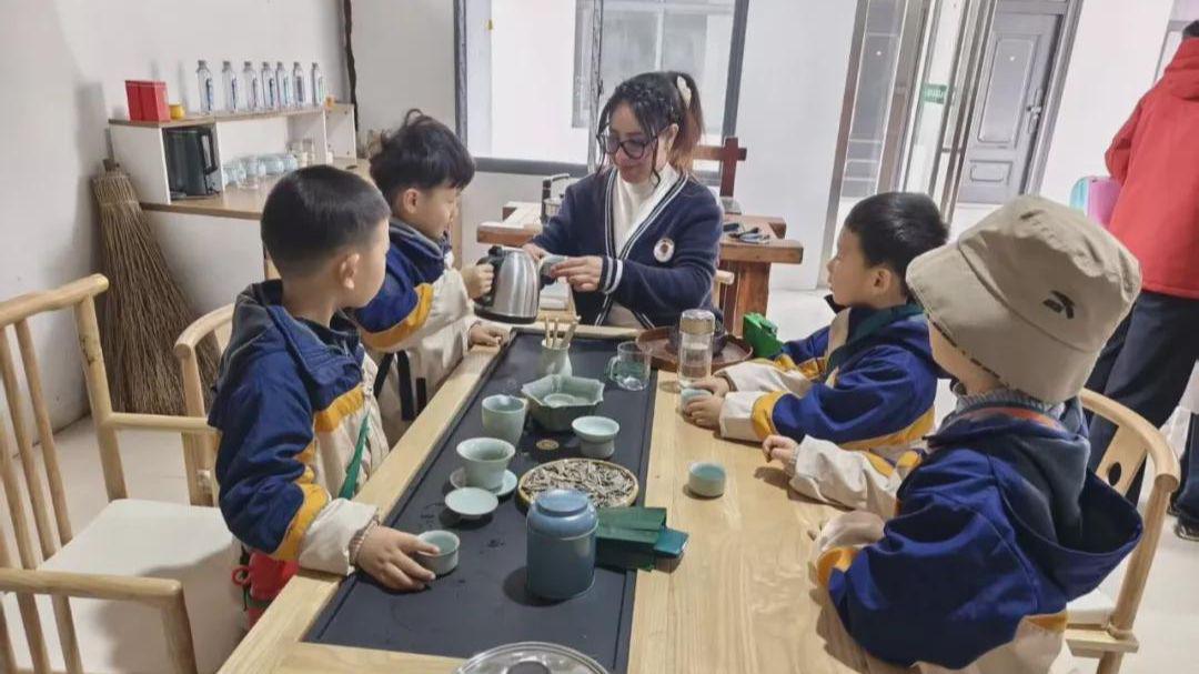 最后,大家一起品尝清香的茶水,细细品味自己劳动换来的滋味。茶香萦绕,喜悦满溢,在一口清甜中,孩子们真切体会到劳动的珍贵与美好。孩子们还一起认识茶具,学习简单的茶礼仪,在氤氲茶香中,感受中华传统文化的博大精深。小小的心灵里,种下了一颗热爱传统文化的种子,在春日的滋养下慢慢发芽。
