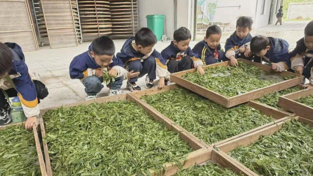 采摘完毕,孩子们走进制茶车间,亲眼见证鲜嫩茶青蜕变为干茶的奇妙过程。从摊晾、杀青,再到揉捻、干燥,孩子们凝神观察每一道传统制茶工序,还亲手体验趣味手工炒茶,沉浸式感受茶文化的匠心与底蕴。