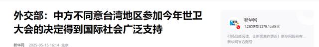 原文记载于新华网2025年05月15日关于:外交部:中方不同意台湾地区参加今年世卫大会的决定得到国际社会广泛支持